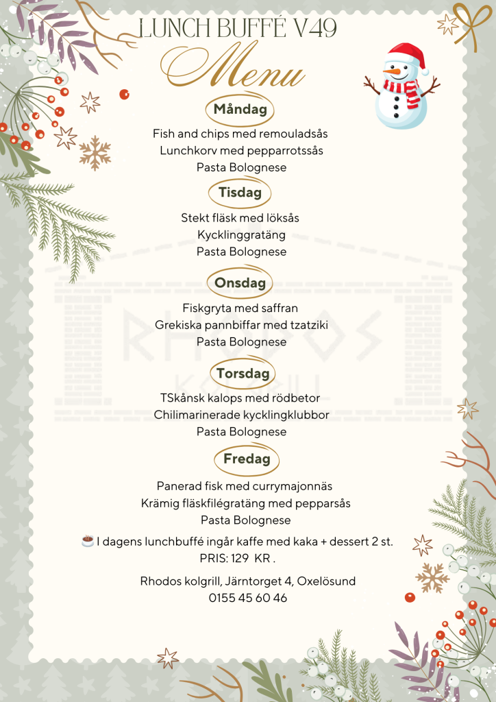 Välkommen till Rhodos Grekiska Kolgrillen! Vi är en restaurang i Oxelösund som serverar mat av hög kvalitet till rimliga priser.